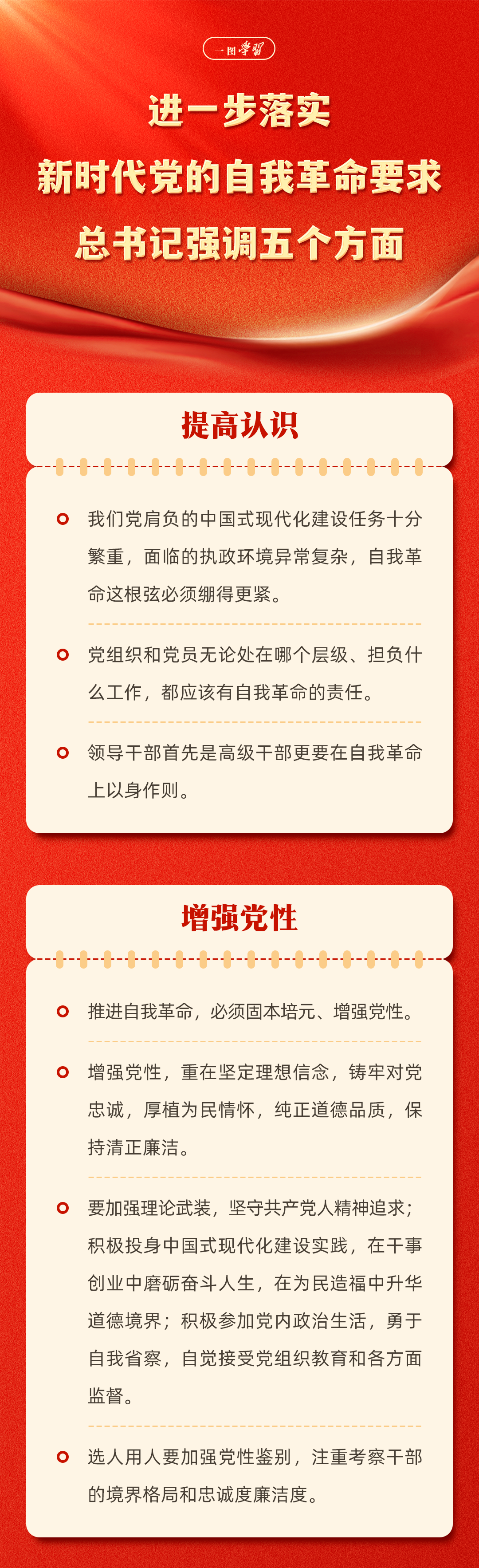 进一步落实新时代党的自我革命要求,习近平总书记强调五个方面