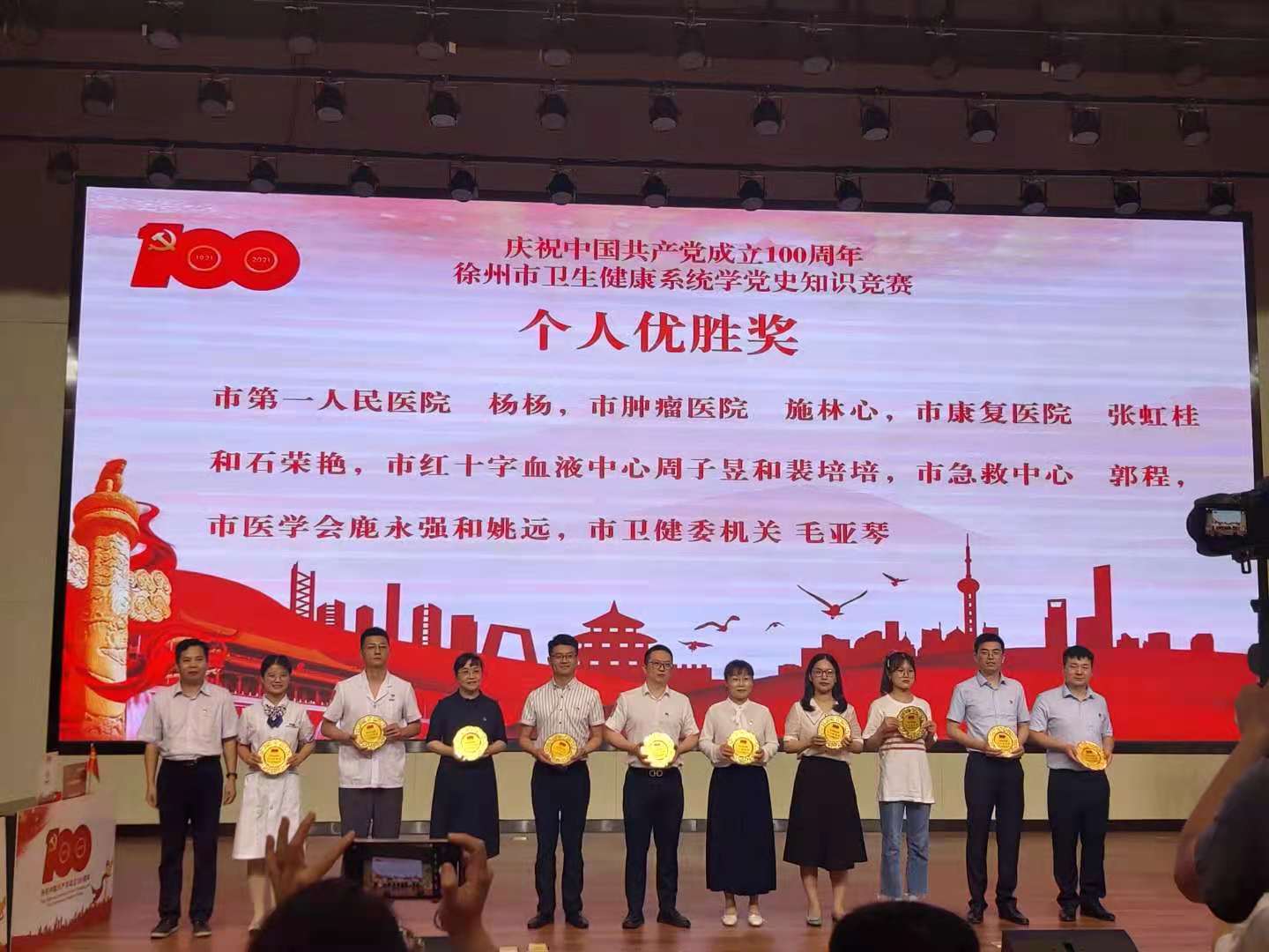 值中国共产党成立100周年之际,6月29日下午,由中共徐州市卫生健康委员会委员会主办,徐州市卫生健康委员会党史学习教育领导小组承办的徐州市卫生健康系统“传承红色基因、践行初心使命、打造区域样板”党史知识竞赛在市第一人民医院学术报告厅隆重举行,市卫健委主要领导,参赛医疗卫生单位党政班子成员代表,来自市卫健委及各医疗卫生单位的10支参赛代表队参加了此次竞赛。