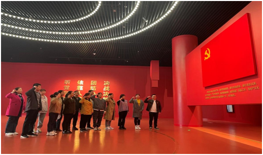支部在展览大厅重温入党誓词,坚决拥护中国共产党的领导,守好人民的江山,为人民的健康不懈努力