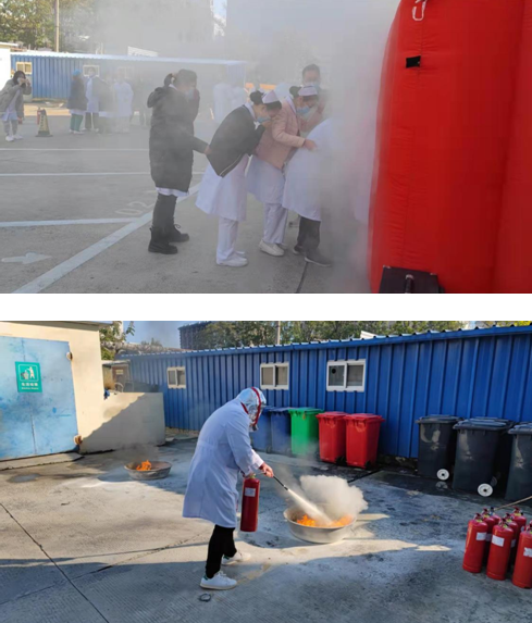 下午14时30分整,在停车场急诊大厅门前,曹同斌院长宣布演练正式开始。演练分为两个部分。首先体验火灾发生时,浓烟及黑暗情况下,如何正确逃生自救。随后进行水带连接、摘戴防毒面具、消防灭火演练,整个演练历时90分钟,各个环节紧张有序,快速高效,演练取得了圆满成功。