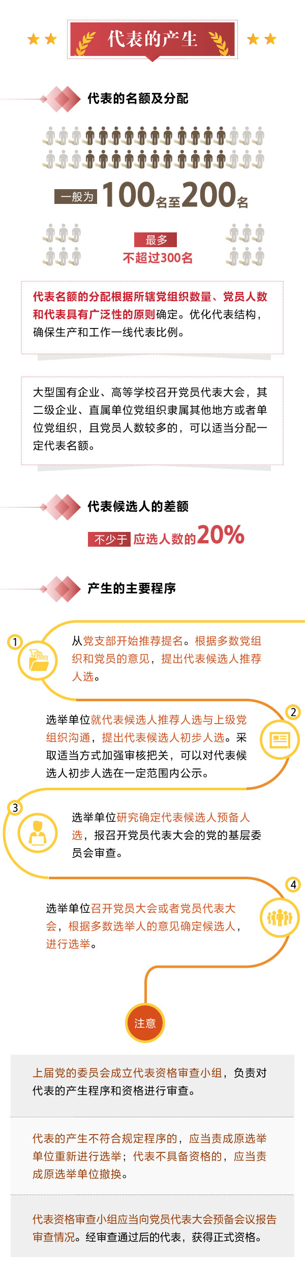 代表名额的分配根据所辖党组织数量、党员人数和代表具有广泛性的原则确定。优化代表结构,确保生产和工作一线代表比例。