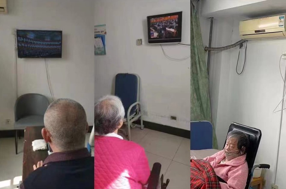 各病区组织职工、病陪人,通过电视、网络等渠道,第一时间收看大会盛况。