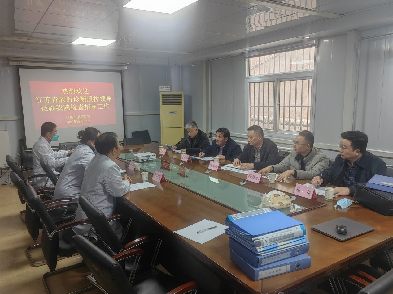 2023年2月7日下午,江苏省放射诊断质控专家组来到徐州市康复医院对2022年度放射质控工作开展了现场督查。专家组由盐城市第一人民医院影像科徐高峰主任带队,盐城市第一人民医院影像科陈望、符益纲主任、盐城市第三人民医院影像科董从松主任、徐州市医科大学影像学院胡春峰院长参与检查。徐州市康复医院院长曹同斌、副书记范玉娇以及门诊部、设备科、信息科相关负责人陪同检查。