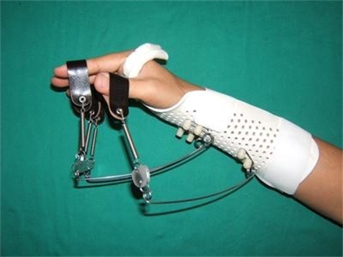 (4)有屈曲挛缩者,进行徒手或机械的牵伸治疗。
