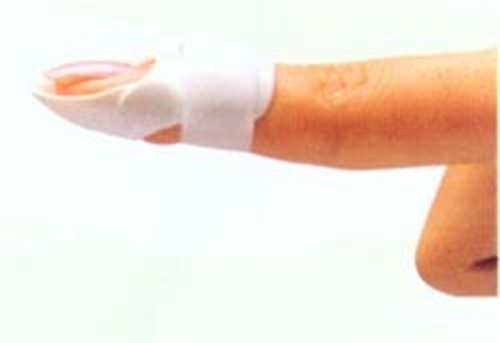 改石膏托仅固定远指关节于10°过伸位,白天做近指关节主动伸屈活动,每小时10次。