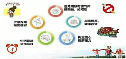 3、根据季节气温的变化增减衣物,注意保暖,防止受凉感冒,预防呼吸道感染;保持室内空气流通,每日定时开窗通风。