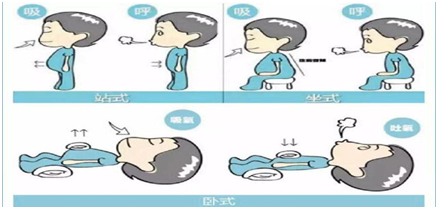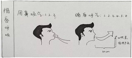 (1)缩唇呼吸:缩唇呼吸的技巧是通过缩唇形成的微弱阻力来延长呼气时间,增加气道压力,延缓气道塌陷。