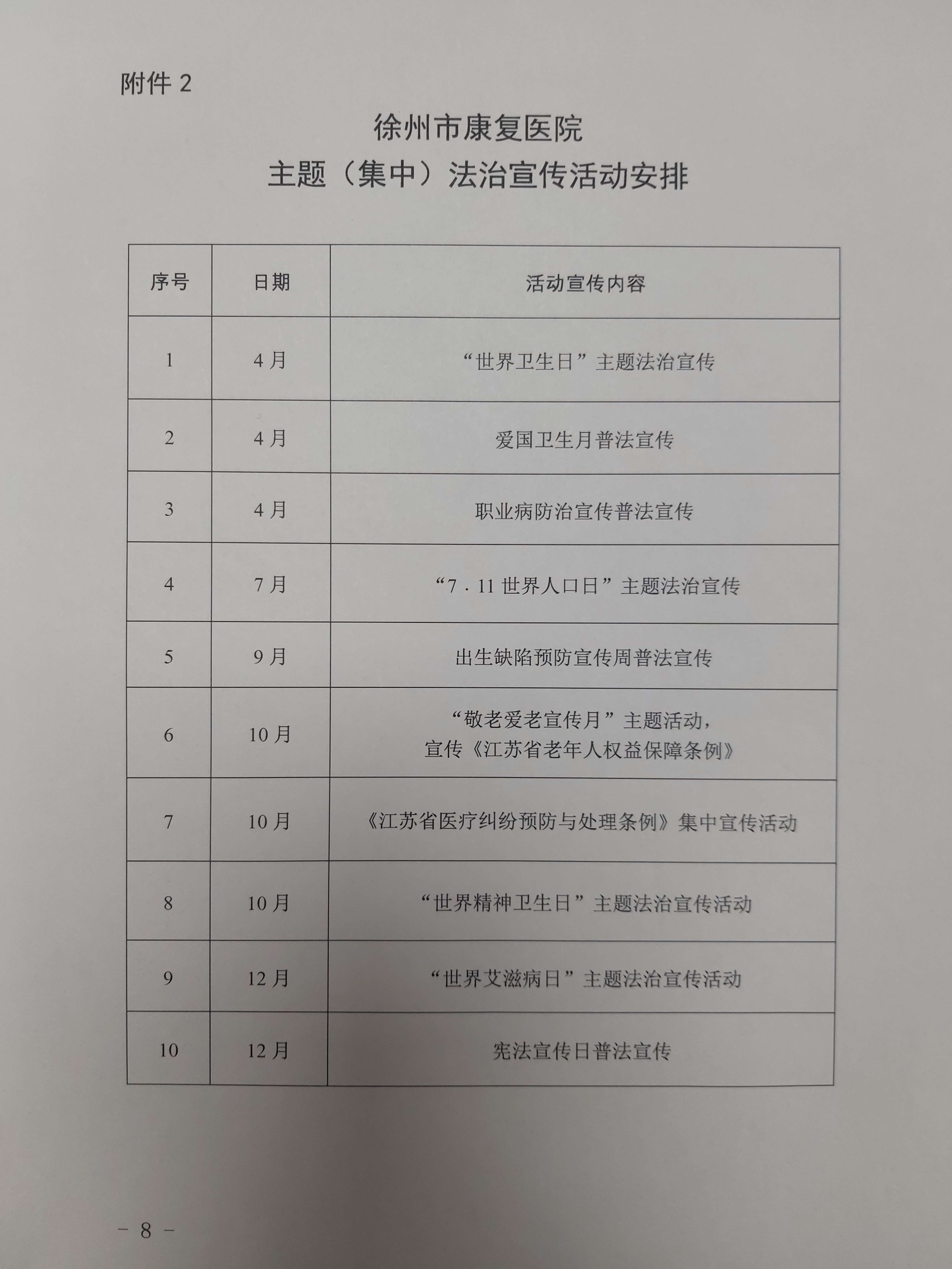2.徐州市康复医院主题(集中)法治宣传活动安排