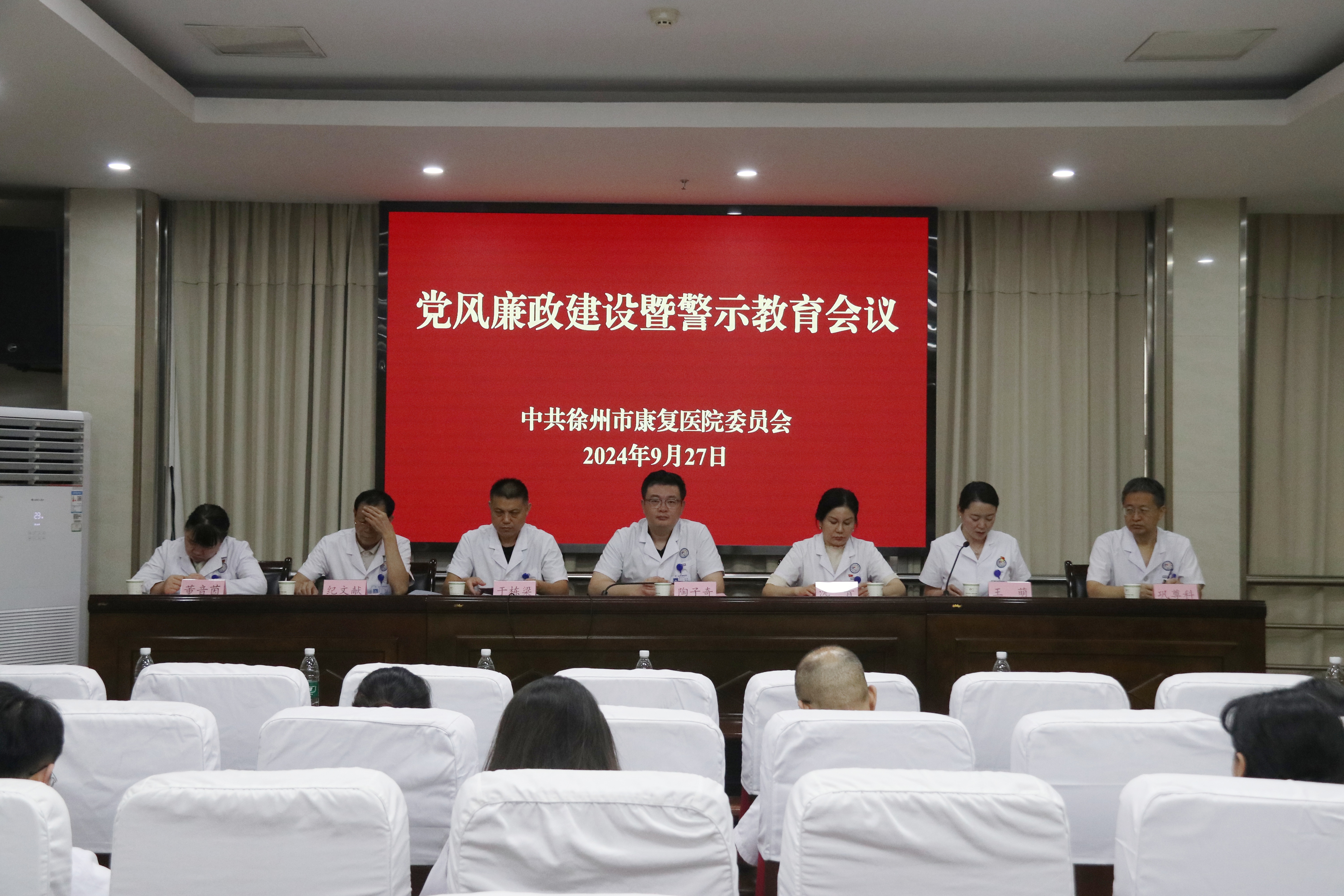2024年9月27日下午,徐州市康复医院在A座6楼会议室召开党风廉政建设暨警示教育会议,党委副书记、院长陶子奇出席会议并讲话,院领导班子成员、职能科室负责人、各病区主任、医疗组长、护士长、关键岗位人员参会。会议由副院长王萌主持。