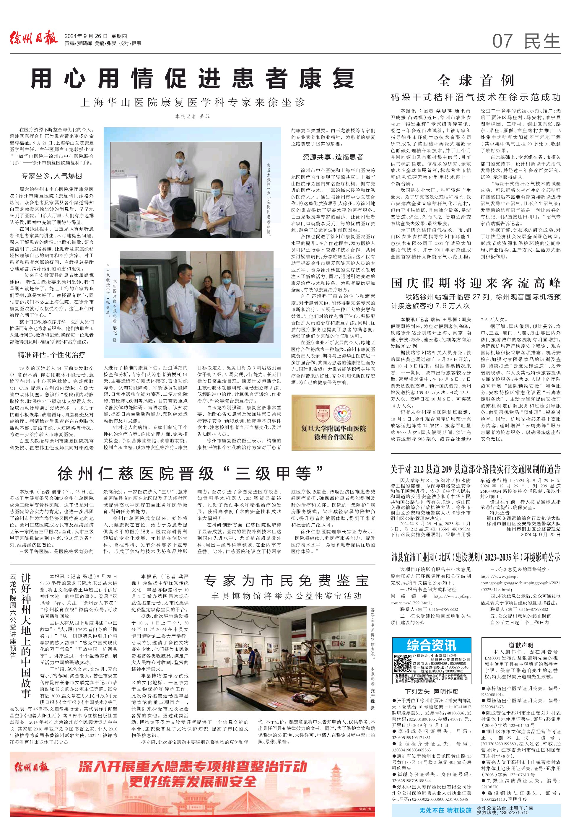 【徐州日报】用心用情促进患者康复