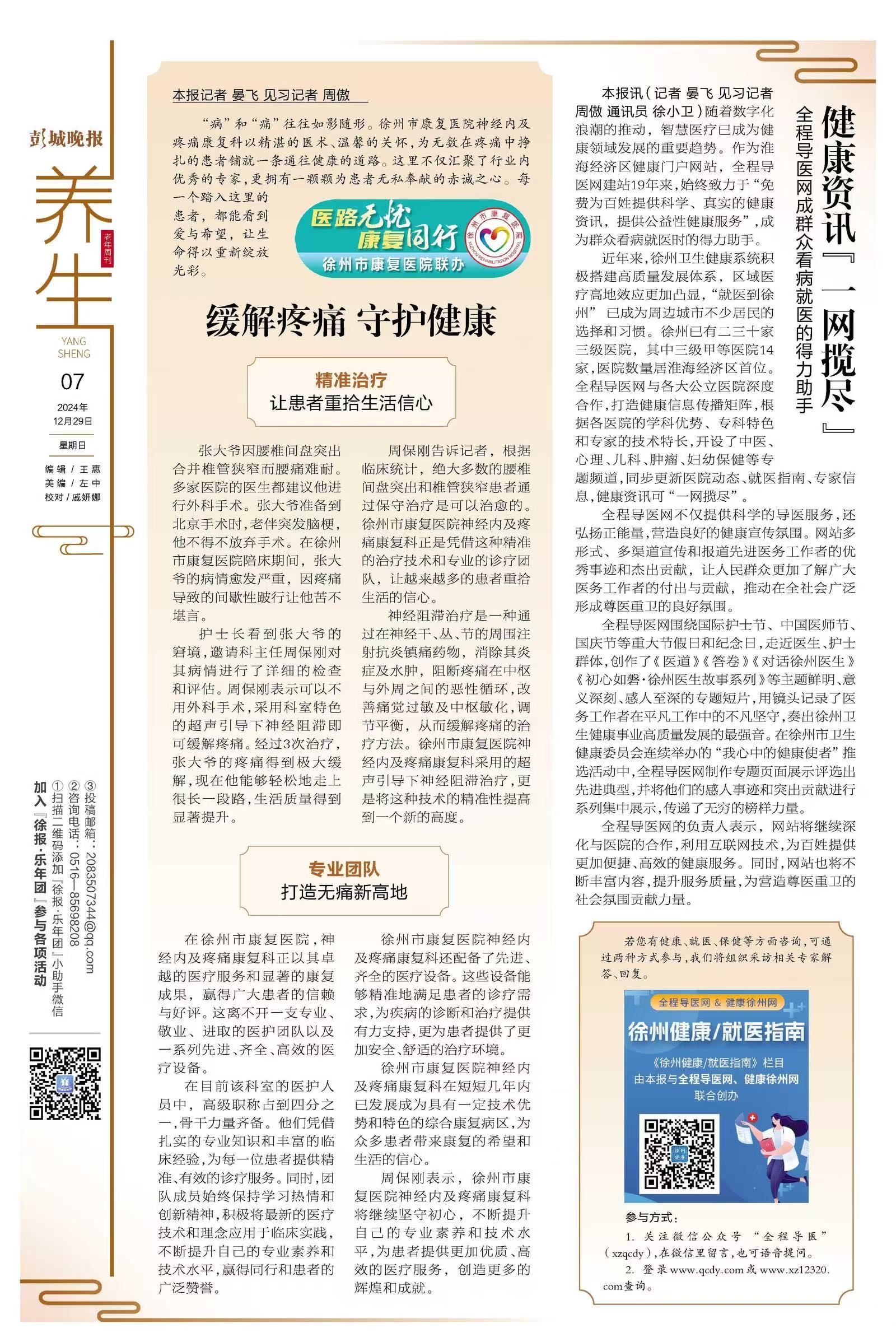 “病”和“痛”往往如影随形。徐州市康复医院神经内及疼痛康复科以精湛的医术、温馨的关怀,为无数在疼痛中挣扎的患者铺就一条通往健康的道路。这里不仅汇聚了行业内优秀的专家,更拥有一颗颗为患者无私奉献的赤诚之心。每一个踏入这里的患者,都能看到爱与希望,让生命得以重新绽放光彩。