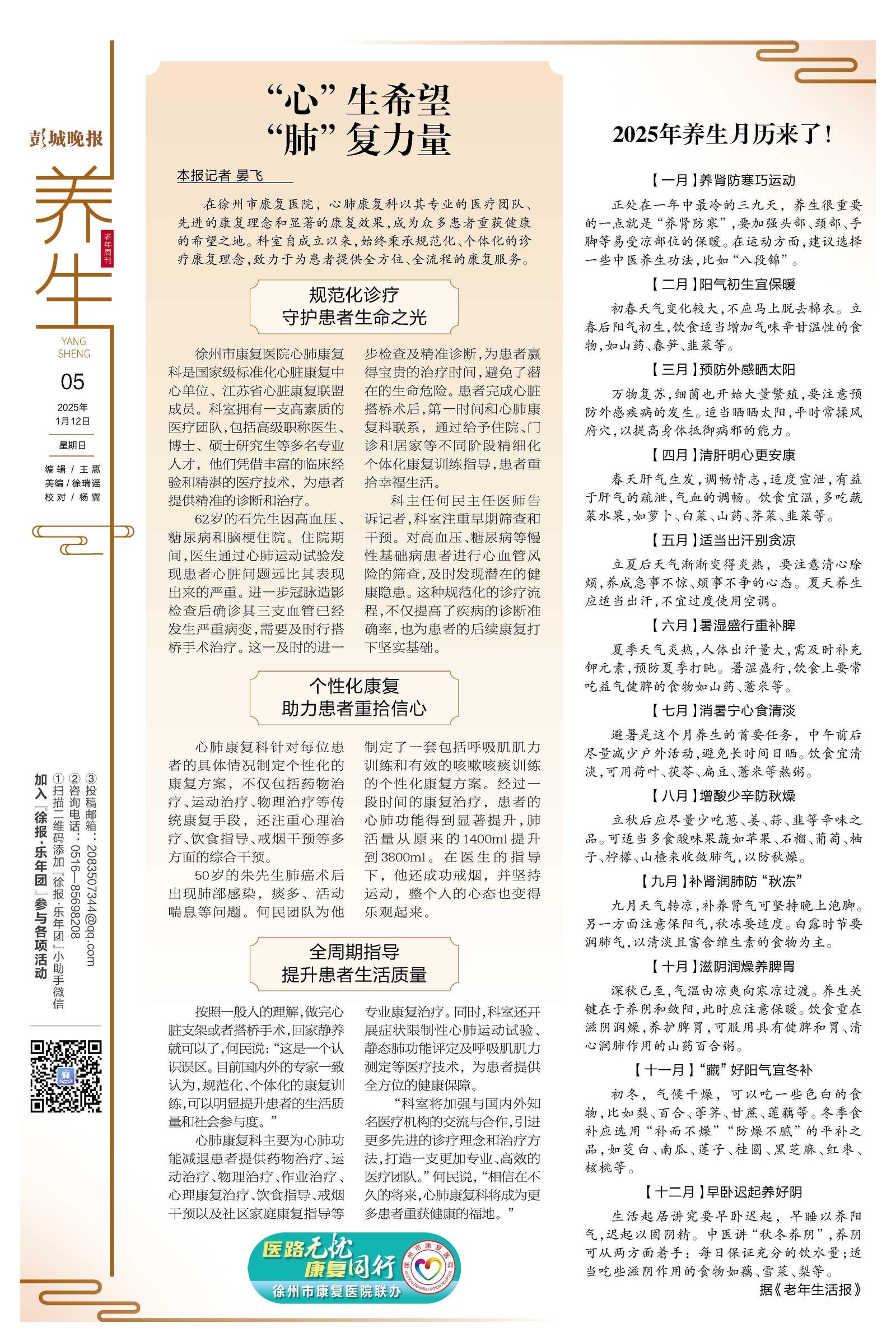 “科室将加强与国内外知名医疗机构的交流与合作,引进更多先进的诊疗理念和治疗方法,打造一支更加专业、高效的医疗团队。”何民说,“相信在不久的将来,心肺康复科将成为更多患者重获健康的福地。” 监制:王培安 总编:陶子奇 审核:于栋梁 编辑:夏 蓉