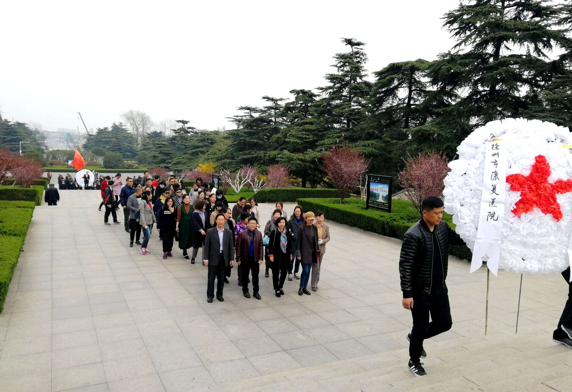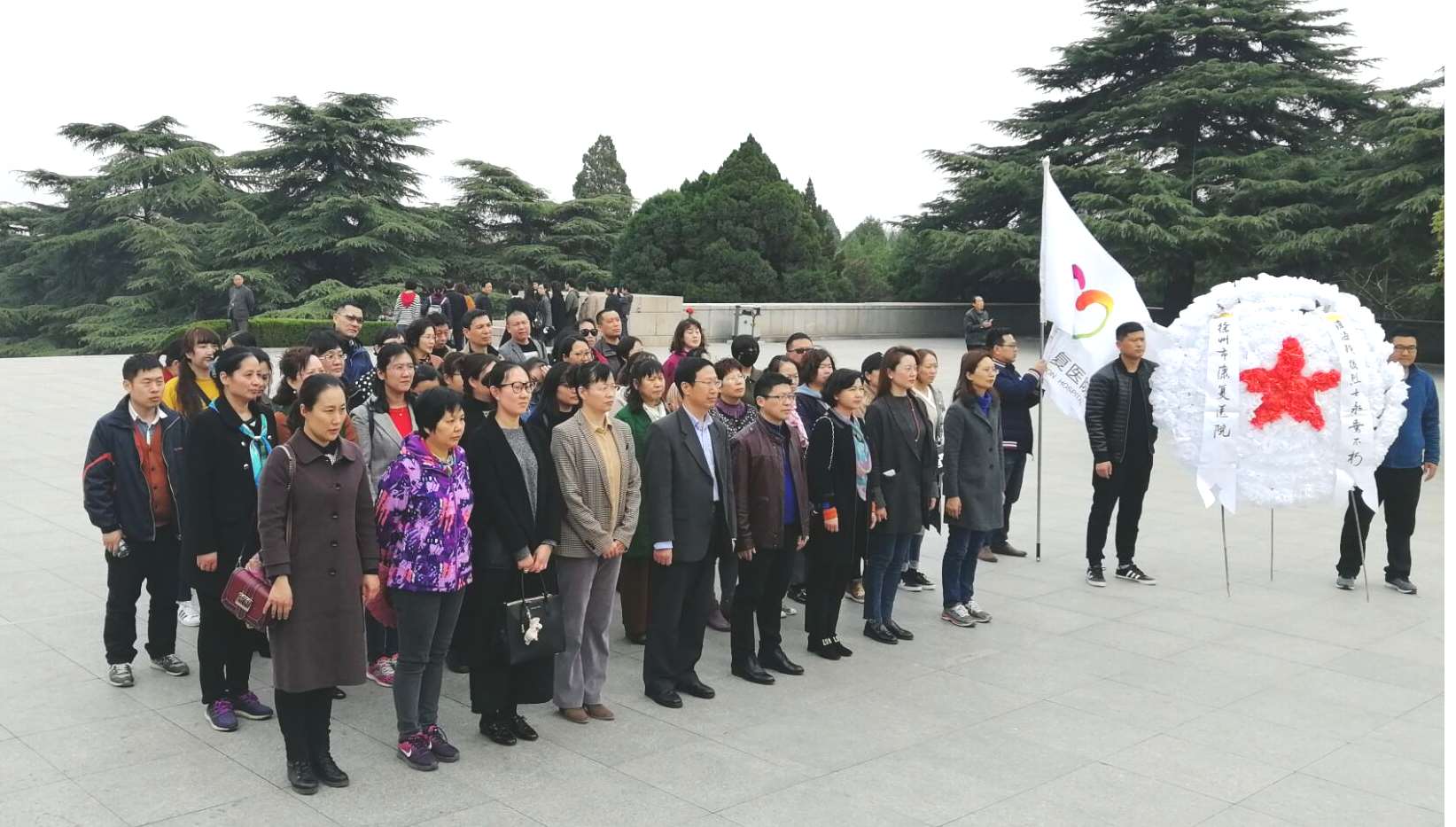 今年是新中国成立70周年,《中华人民共和国英雄烈士保护法》颁布实施一周年,为加强对医院党员干部职工爱国主义教育,激发学习英烈、崇尚英烈、传承精神的热情,4月2日下午,院党委组织医院党员干部职工前往淮海战役烈士纪念塔开展“传承?2019清明祭英烈”主题教育活动。