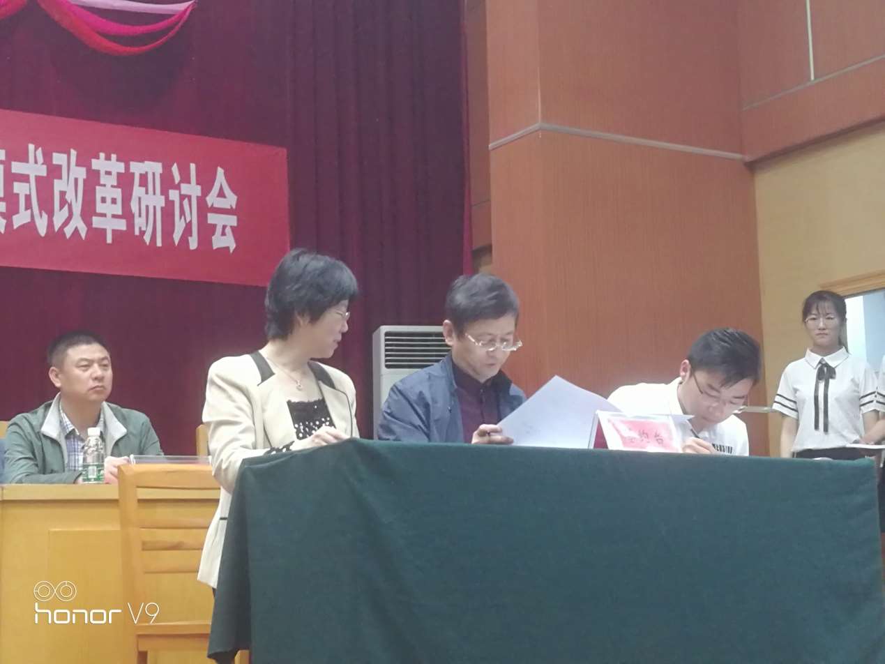 陈伟副院长代表我院与江苏医药职业学院签订了康复治疗专业1+2师徒制学生培养协议。医教科康丽华科长做了以“管培结合,培养德技双馨康复医疗实用人才”为题的教学汇报,通过医院介绍、师徒制教学管理、教学中现存问题及我院未来发展前景四个方面向与会代表展示了我院在师徒制教学管理和学生培养方面取得的成绩和我院发展的现在和未来,汇报得到了学校及其它同仁的赞同和认可。我院2016级师徒制学生代表秦妮向大会做了学习生活体验交流。