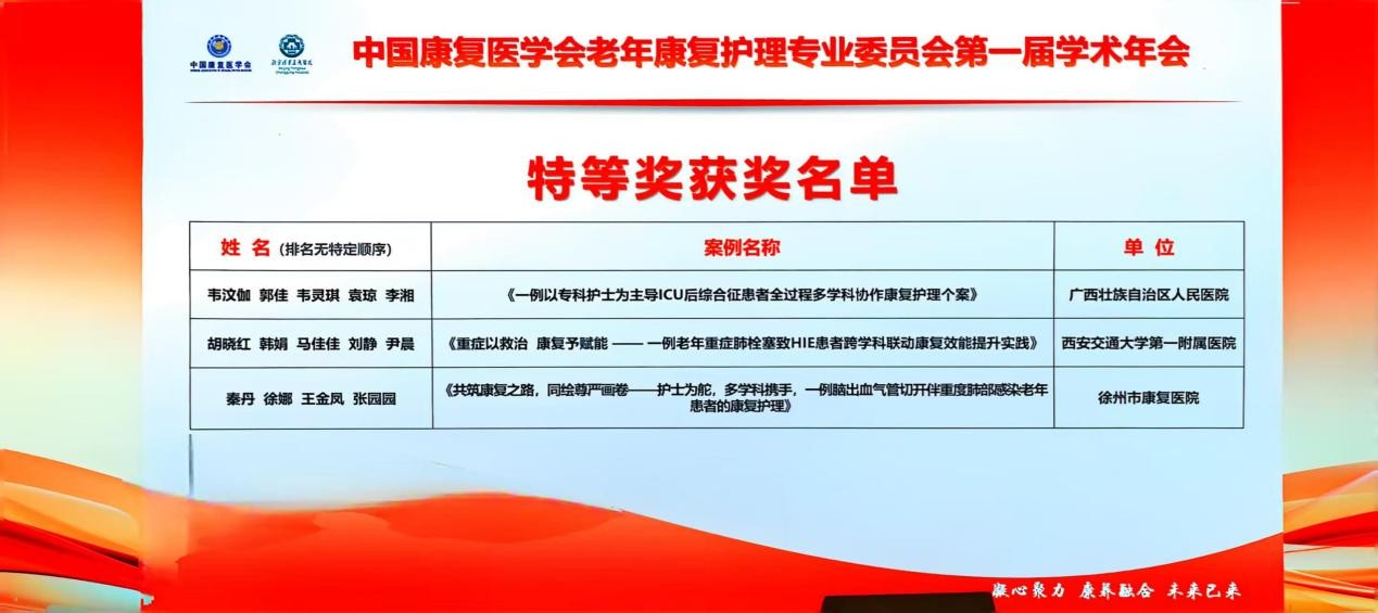 徐州市康复医院护理团队荣获中国康复医学会老年康复护理案例大赛特等奖