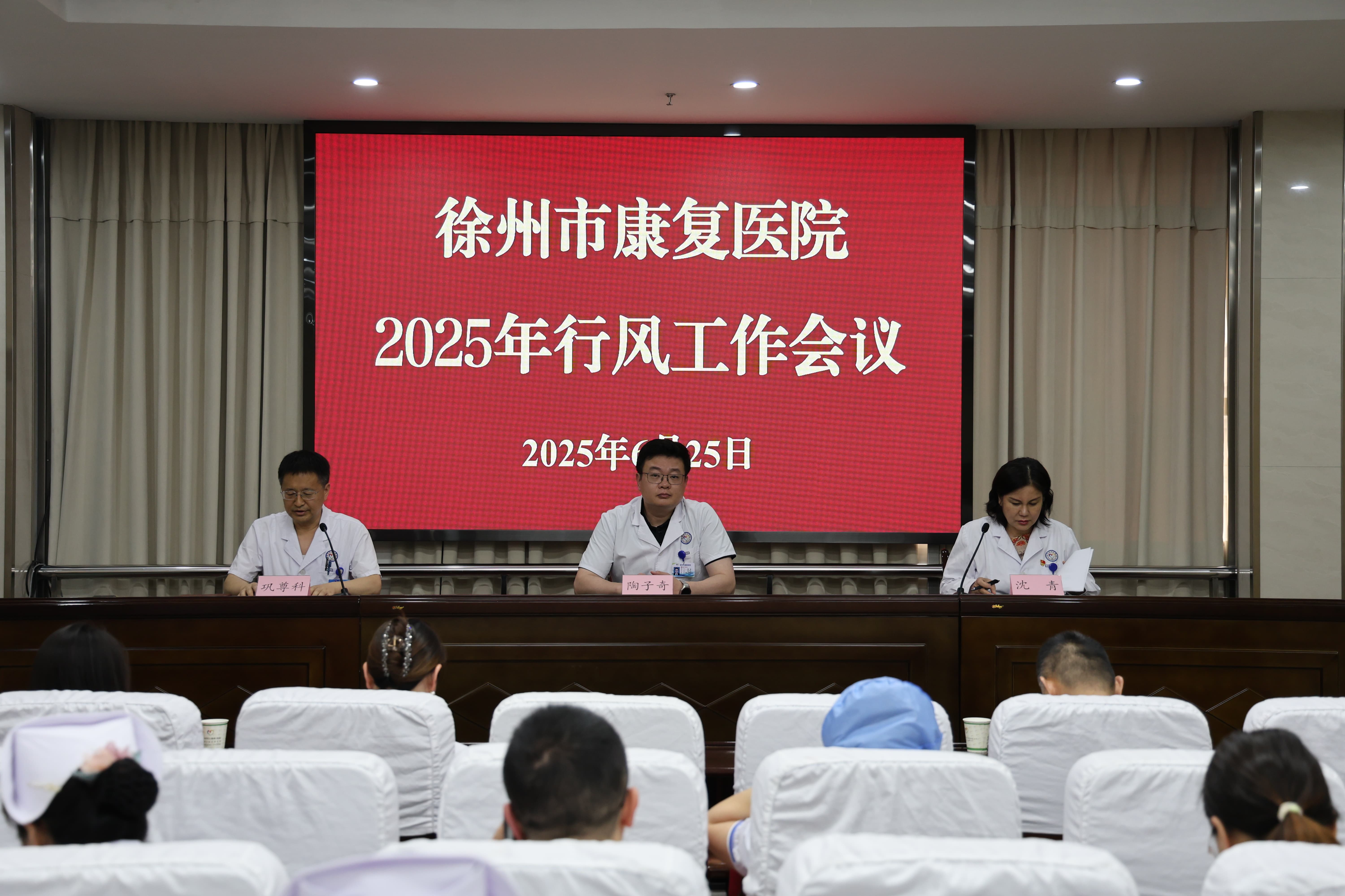 根据省、市卫健委行风工作会议精神,为适应新形势下医疗卫生行业作风建设要求,进一步加强医院医德医风建设,规范医疗服务行为。6月25日下午,徐州市康复医院召开了2025年行风工作会议进行了工作部署。院党委副书记、院长陶子奇,副院长沈青等领导班子成员及全体中层干部、医疗组长参加了会议。会议由副院长巩尊科主持。