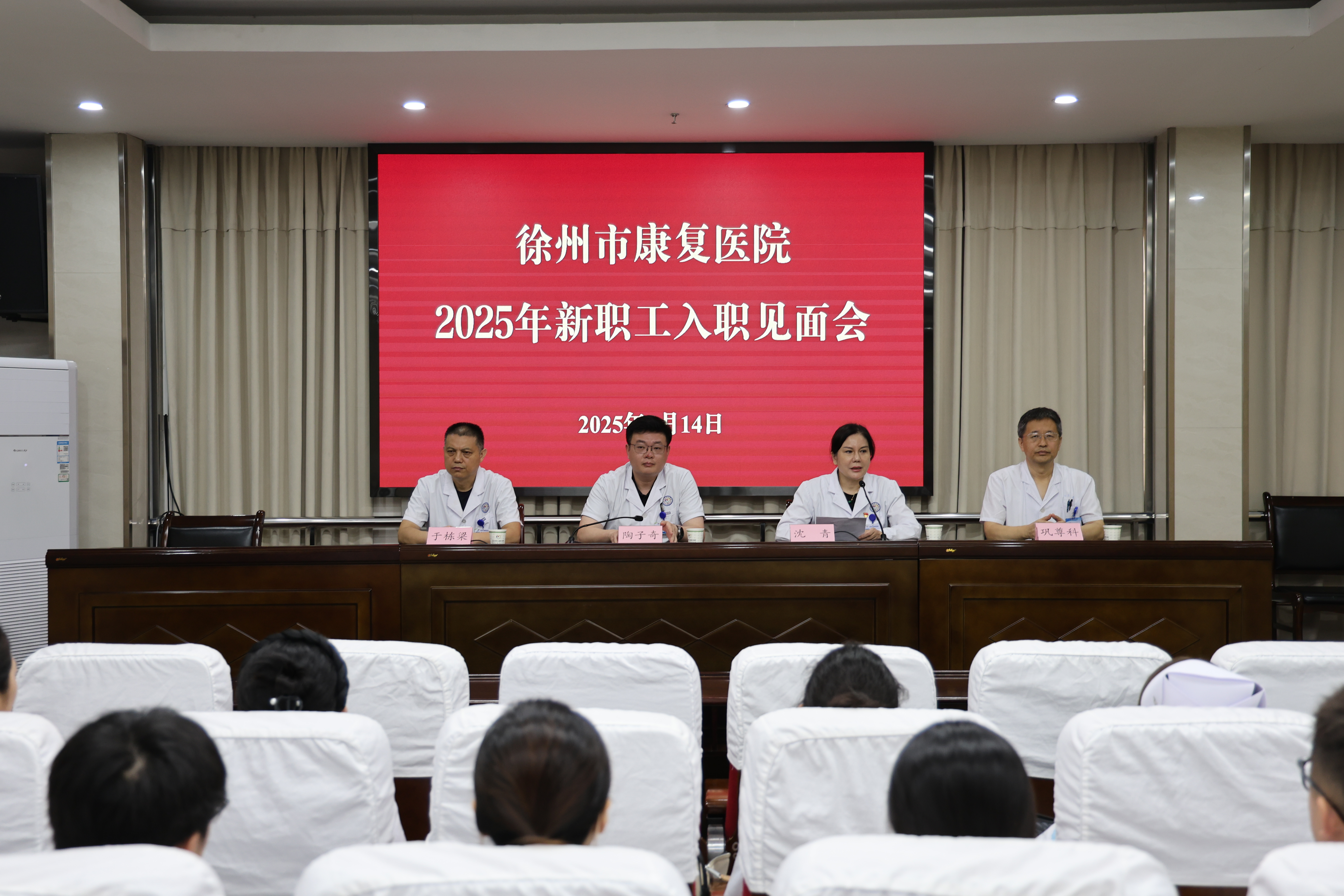 8月14日上午,徐州市康复医院举办了新职工入职见面会。党委副书记、院长陶子奇等领导班子成员出席。副书记沈青主持见面会。全体中层干部、新入职职工参加会议。