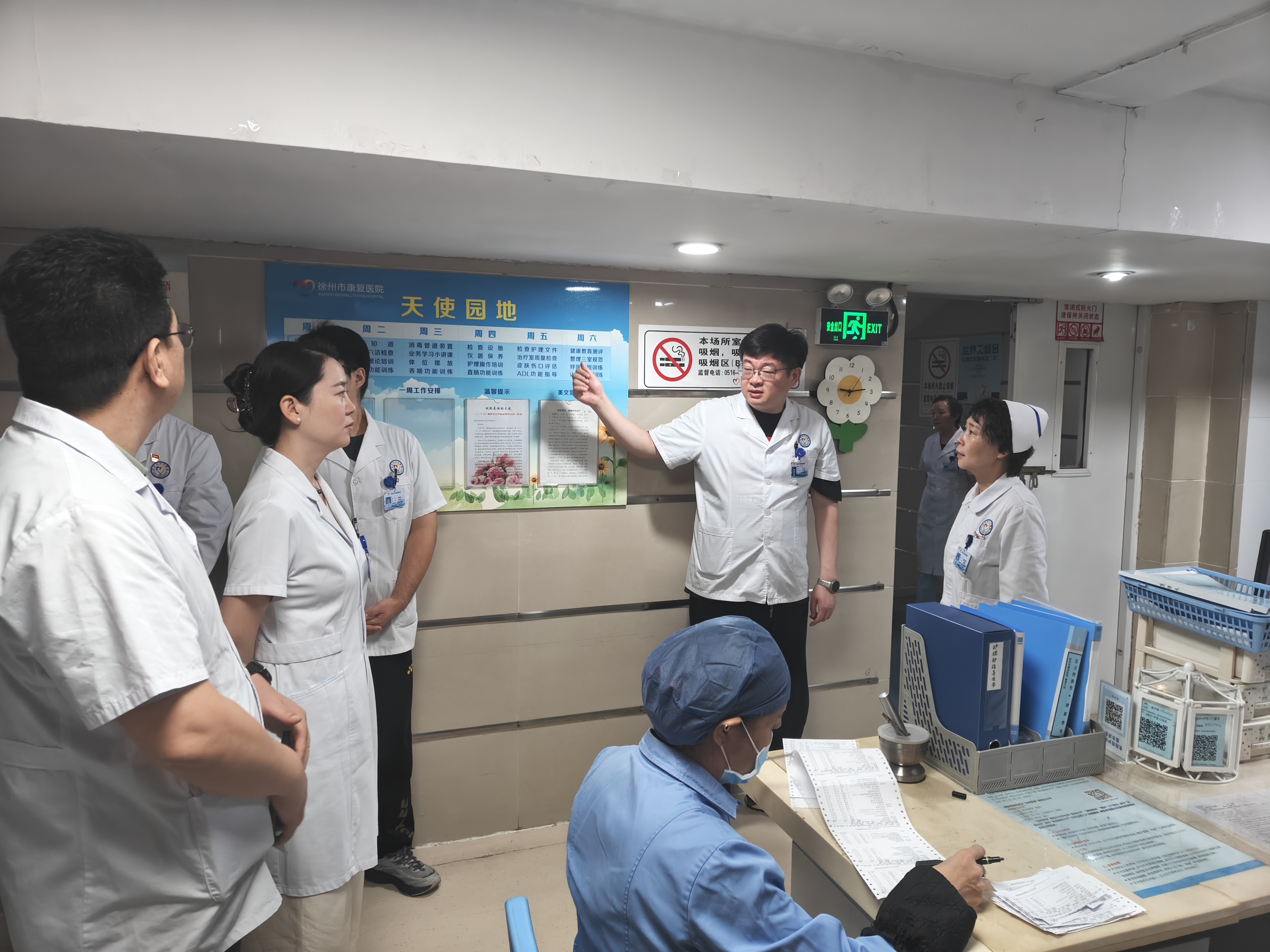 为确保国庆、中秋“双节”期间医院各项工作安全、有序开展,9月25日上午,徐州市康复医院党委副书记、院长陶子奇等领导班子成员带领相关职能科室负责人,分两组深入全院各区域,重点查看病房区域的消防设施与疏散通道,确保病房疏散通道时刻畅通、消防设施完好有效,坚决杜绝火灾隐患。