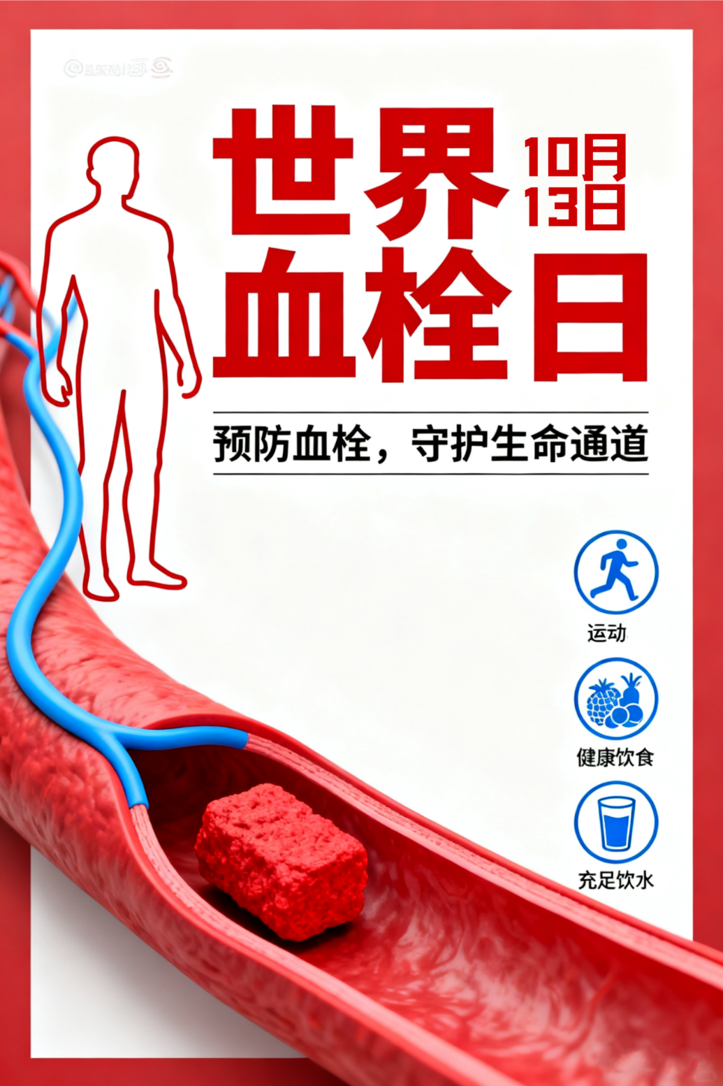 每年的10月13日是 “世界血栓日”。血栓,这个被称为 “隐形杀手” 的健康威胁,可发生于人体多个部位,不仅可能引发肢体肿胀、疼痛等症状,严重时更会导致肺栓塞、脑梗死等致命疾病,对人们的健康造成极大危害。