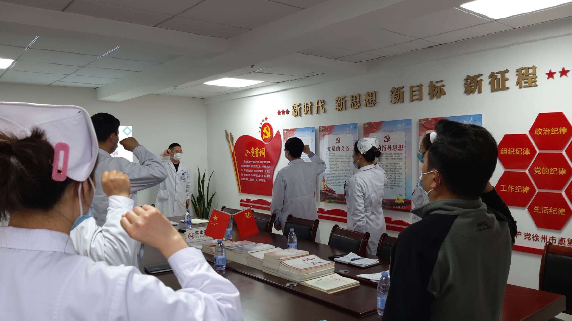 医务第一支部党员伏蜜蜜同志是一名外科主管护师,作为徐州市第一批援鄂医疗人员,驰援武汉市江夏区第一人民医院。活动首先请伏蜜蜜分享了在武汉的抗疫经历和感悟,抗击新冠肺炎期间的点点滴滴,有心酸的泪水,也有幸福的笑容,打动了在座的每一个人。她说:“新冠疫情发生后,党中央的坚强、正确领导,高瞻远瞩和运筹帷幄,全中国上下团结一心抗疫的举动,让我深刻体会到了社会主义制度的优越性,更加坚定了政治立场,明白了坚决维护党中央权威和集中统一领导的深刻涵义。作为一名护士,感谢党和人民的培养,感谢医院领导的信任,有幸参加了这次抗击新冠肺炎疫情的战斗,给了我一生难以忘怀的特殊经历,让我倍加懂得珍惜生命、守护健康的意义,在今后的工作中若有需要,我仍然会义无反顾听从党组织的召唤。”