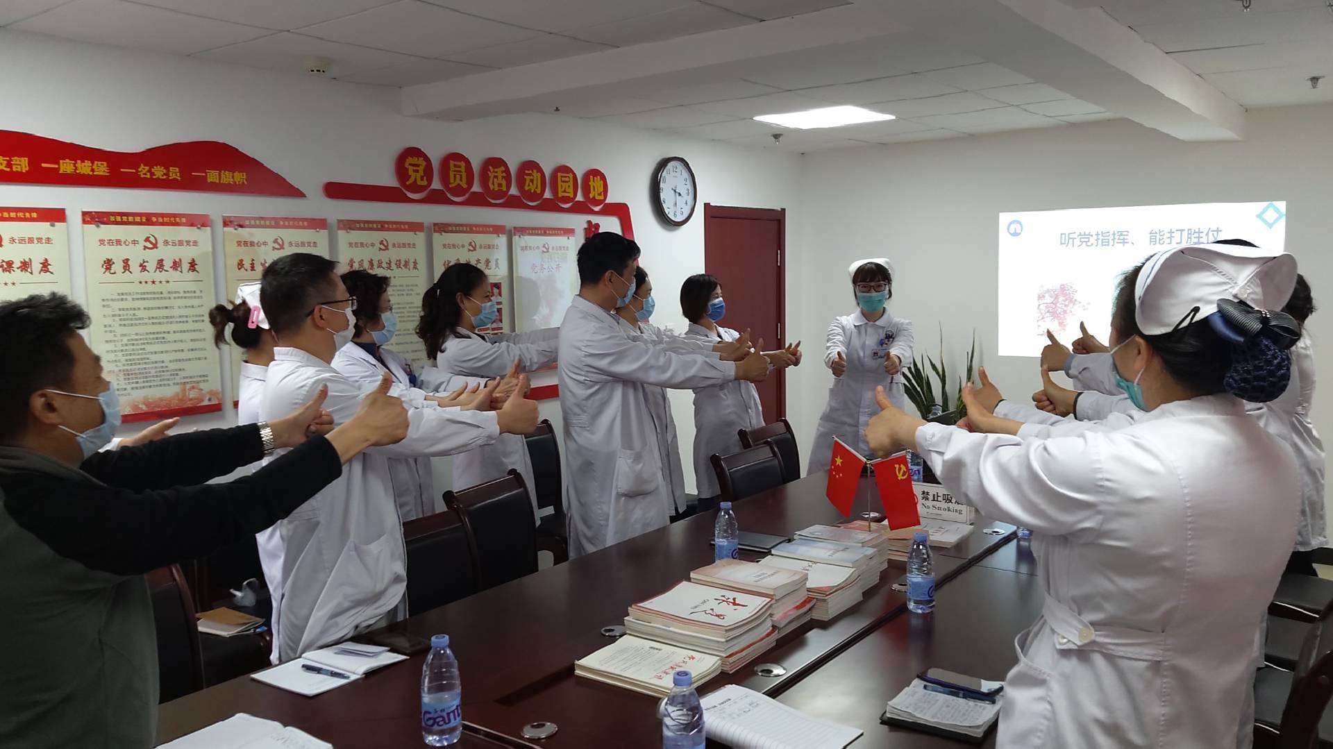 最后党委书记谢士达同志带领全体党员重温入党誓词,要求全院党员在疫情防控斗争面前,要肩负起时代赋予的使命与责任,与祖国同呼吸、共命运,与人民共患难,做到以下三点:一是认真学习习总书记系列讲话;二是培养独立思考、明辨是非的能力;三是疫情没有结束,做好本职工作,为打赢疫情防控阻击战奉献自己的力量。