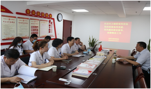 随后,党委书记谢士达代表医院党委汇报了近期医院党建、党风廉政建设和巡察整改工作情况。王铁军同志对康复医院各项工作给予了充分肯定,对医院巡察整改、党建、党风廉政、安全生产等方面提出了具体要求:要高度重视巡察整改工作,按照巡察共性和个性问题制定巡察整改问题清单,逐项落实整改措施,建立完善整改台账资料;要进一步加强党风廉政廉洁和职业道德教育,克服麻痹松懈思想,抓好药品使用环节管理,防范廉政廉洁风险;要建立健全各项安全生产制度,加强安全生产监督管理,做好安全隐患排查和整改,确保医院各项安全。